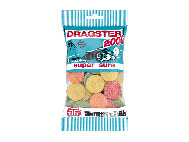 Get ready for the sour rush with Dragster Super Sura – a Swedish candy favorite packed with fruity flavors and an extra sour sugar coating. These chewy candies deliver the perfect balance of sweetness and tanginess, making them a must-have for sour candy fans.