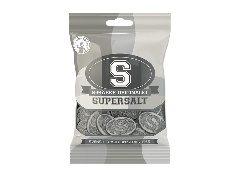 Taste the power of S-märke Supersalt – a Swedish candy tradition since 1956. These chewy licorice pieces are packed with an extra salty punch, designed for those who crave strong, authentic Scandinavian licorice.